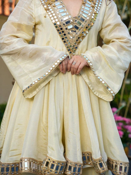 Designed with graceful embroidery and crafted in soft chiffon fabric, this kurta set offers a flowy silhouette with a sophisticated ethnic touch. The breathable material ensures all-day comfort while keeping your look elegant and festive-ready.